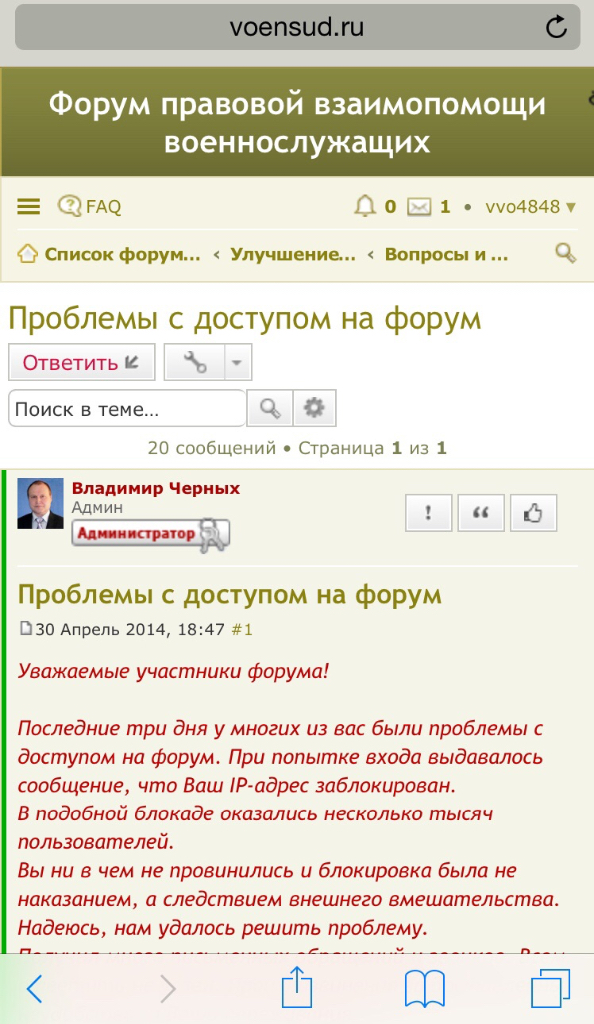 Уже несколько дней невозможно зайти на форум с браузера сафари на айфоне.