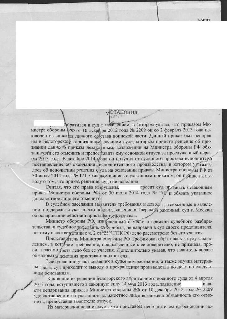 Здравствуйте ,прошу у Вас помощи,кратко суть дела продолжение истории с отменой приказа МО на ИСЧ, подал в суд на отмену нового приказа на ИСЧ вчера было заседание суда -итог вынесено определение о прекращении производства по делу, судью руководствуясь ст.ст. ГПК 220 и 248,Учитывая, что в своем заявлении Я оспариваю действия того же должностного лица,о том же предмете по которому имеется вступившее в законную силу решение суда, не исполнение которого не дает суду оснований для вынесения по делу повторного решения, суд полагает необходимым производство по делу прекратить. Сижу сочиняю частную жалобу, мысли в голову не идут, что писать ? Заранее благодарен.Извиняюсь за сумбур.