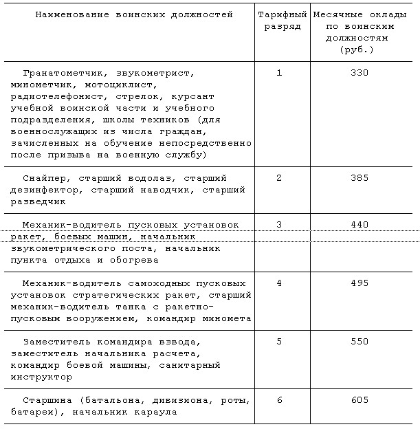 спасибо. я просто не туда посмотрела. а где можно узнать, какой должен быть у него оклад? хотя бы какой минимум? я нашла, но только для военнослужащих по контракту, а вот для военнослужащих по призыву что-то никак не найду