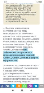 #7053Внимание, читаем, нашел судебную практику по аналогичной ситуации - человек подал документы на страховку, страховая попросила кучу "отсебятины", которая, якобы должна подтверждать вред здоровью, в итоге затянула выплату и человек в итоге взыскал неустойку:Вот это страховая компания и проверяет - для этого необходимо заключение ВВК.QR_BBPOST Нет, именно за заболевание, полученное в период службы