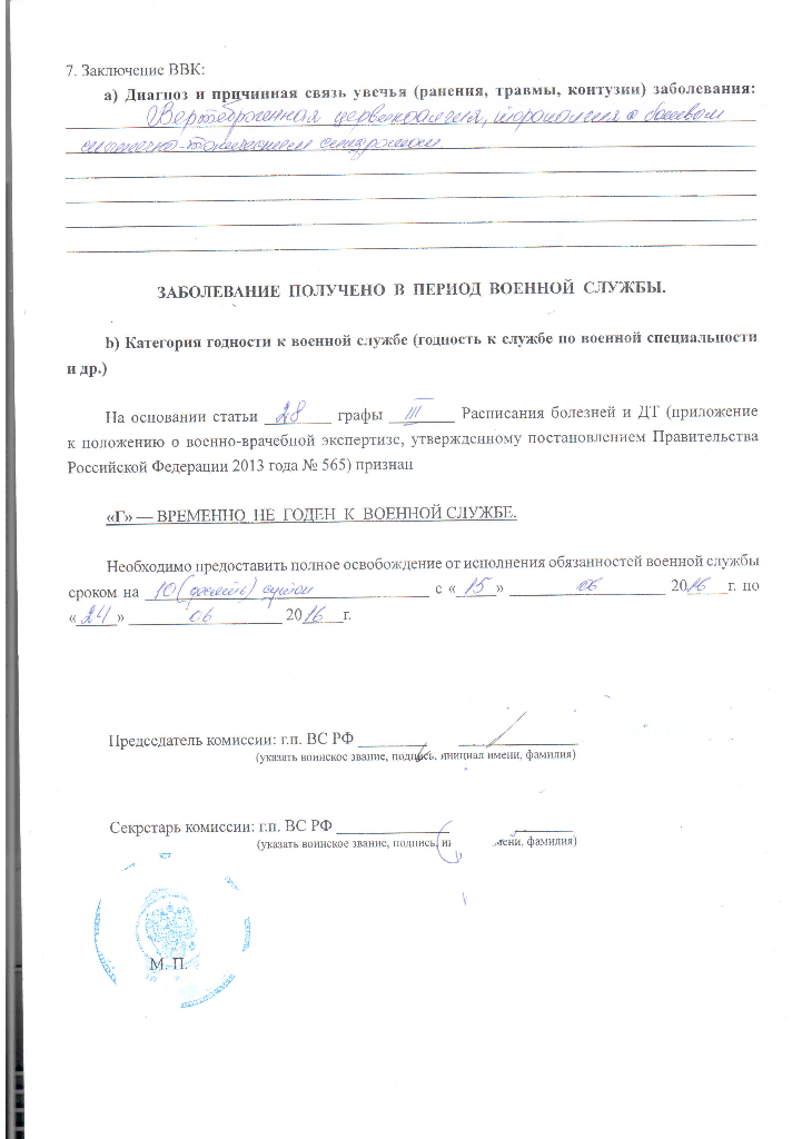 С 6 по 20 ноября находился на листке нетрудоспособности, полученном в гражданском медицинском учреждении (официально). 20 ноября явился в часть, где прошел диспансеризацию (отправил начмед, не знающий всей ситуации). С 21 ноября по 11 января 2016 года находился на стационаре.