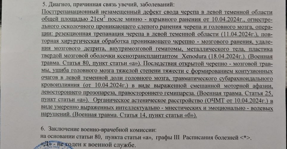 Брат в апреле получил ранение в голову (тяжёлое увечье), прошёл ВВК. Заключение - категория Д.