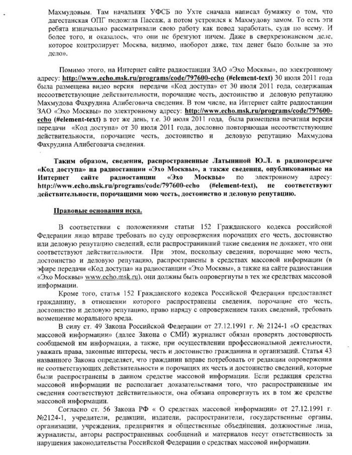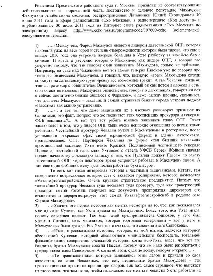 Для образца: ИСКОВОЕ В СУД "О защите чести, достоинства и деловой репутации" на примере из СМИ-онлайн: Дело о "Пассаже" «Дело не менее знаковое, чем Кущевка и Сагра»