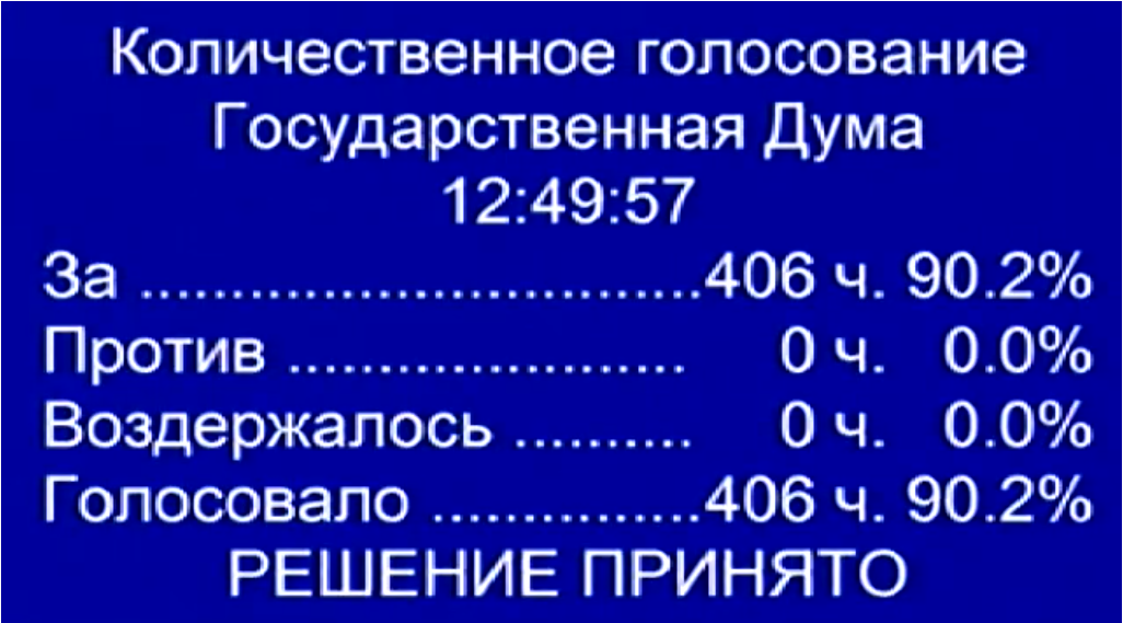 Закон принят без осуждения во 2-м и 3-м чтении.