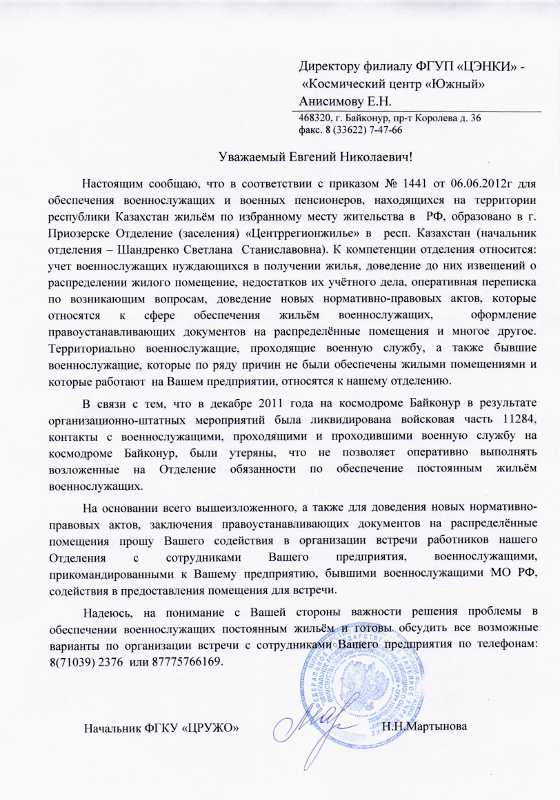 Re: Жилье для Байконурцев