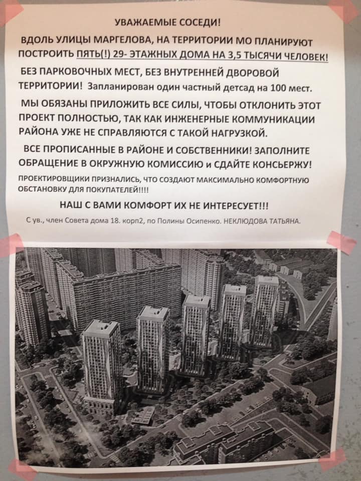 Кому интересно, скоро около ваших домов воткнут 5 башен (26-29 этажей), естественно без парковок, также застроят все ближайшие промзоны, между ленинградкой и Маргелова. Перед редакцией "Красная звезда" построят новое здание для Савеловского суда, в которое он полностью переедет