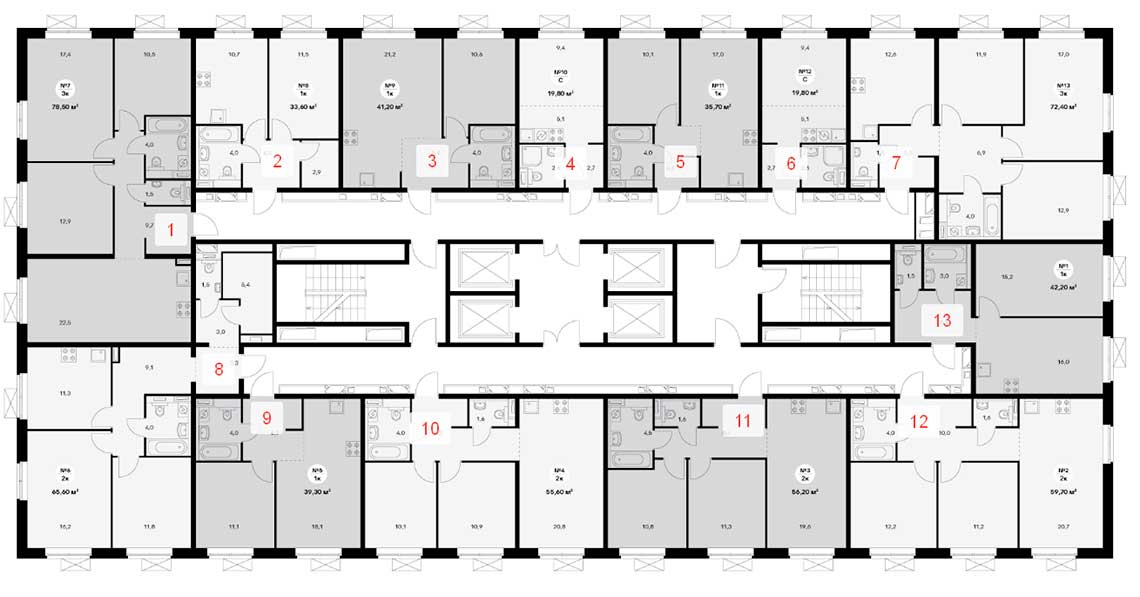 #174Подскажите, кто знает, какая площадь однокомнатных квартир? Я так понимаю, их всего по три на этаже?)