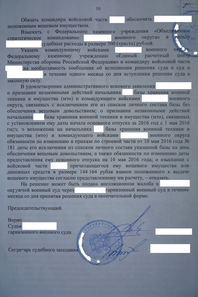 Решение может быть обжаловано в апелляционном порядке в Московский окружной военный суд через <адрес> гарнизонный военный суд в течение месяца со дня его вынесения в окончательной форме.
