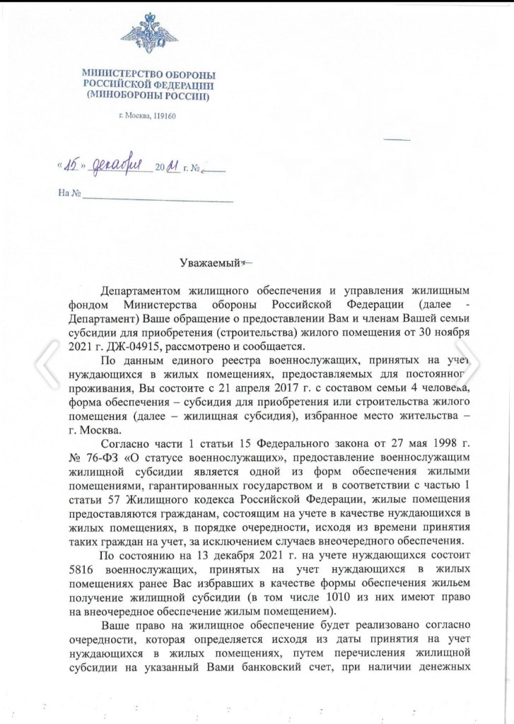 Re: Обращения очередников МО РФ по жилищной субсидии