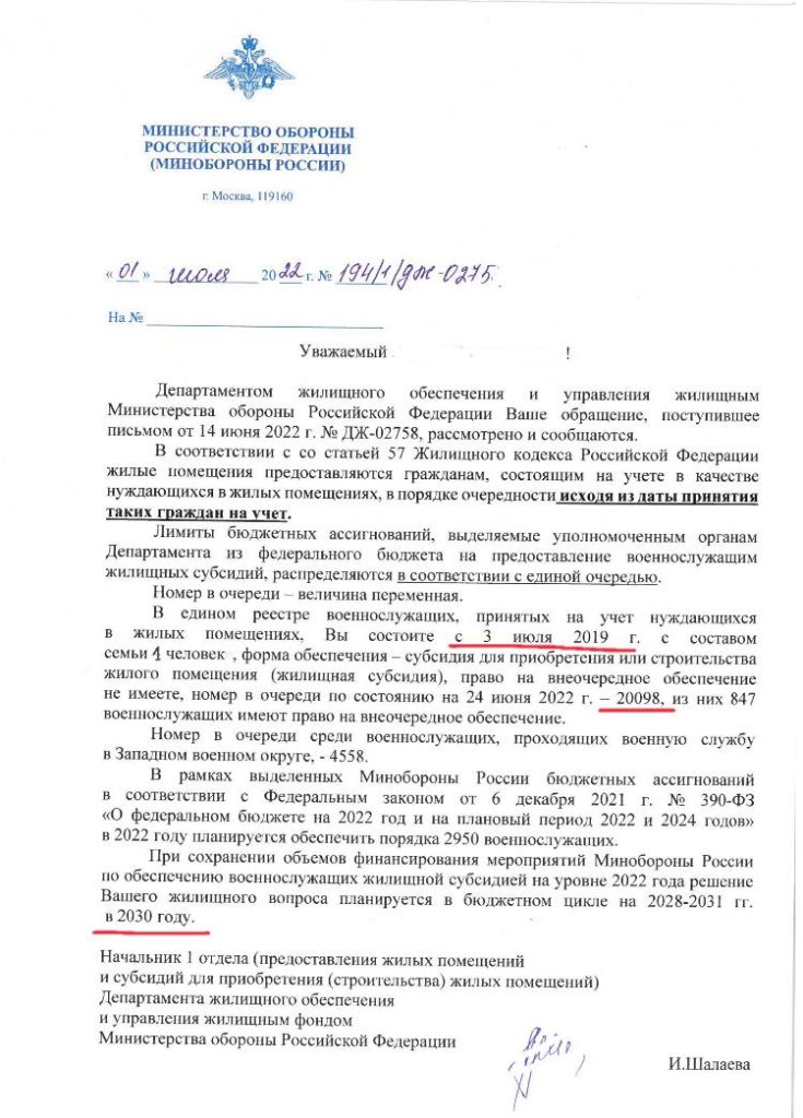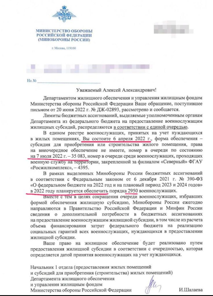 #1920Судя по ответу из Министерства обороны РФ, сейчас жилищная очередь насчитывает более 35 тыс. человек.