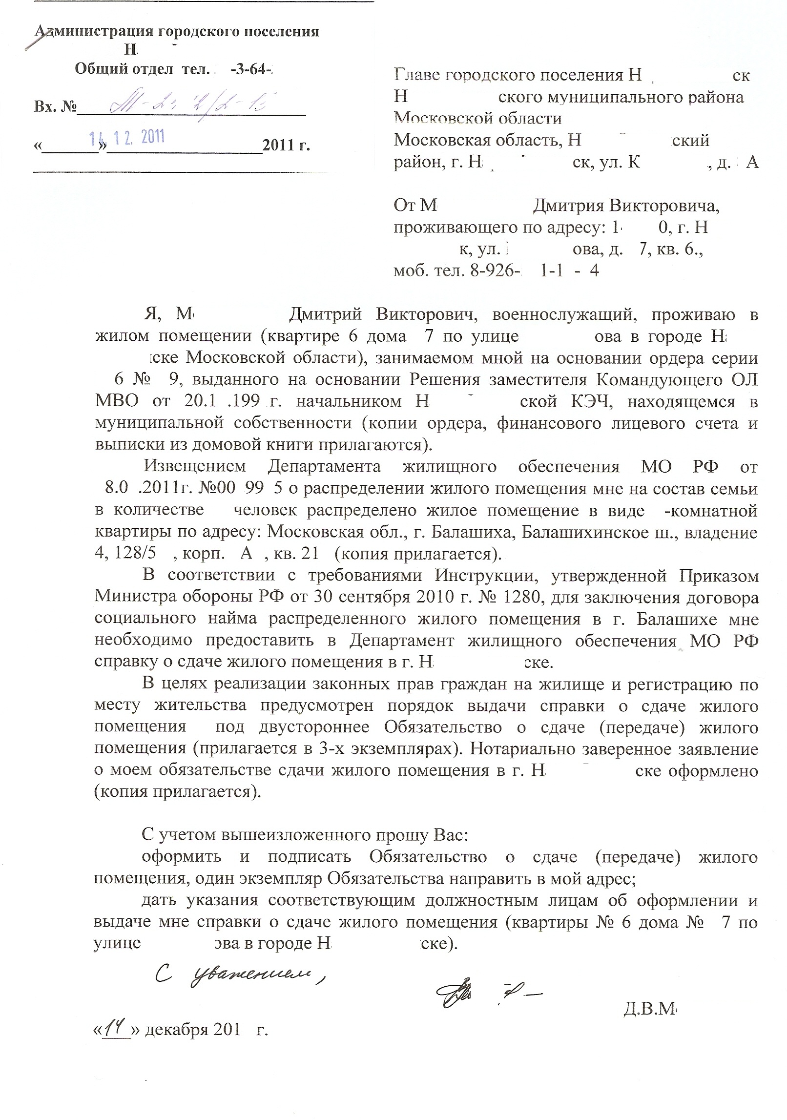 Дмитрий Викторович. Если можно скиньте образец обращения к главе администрации о подписании двухстороннего обязательства и указания УК о приеме жилья. Заранее Спасибо