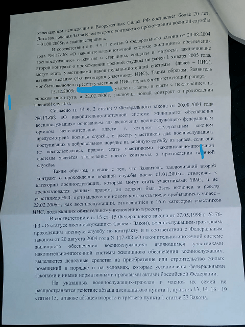 #3099Это всё касается только моей ситуации! А причём здесь окончание контракта? Вот реально, от таких спецов все беды! Вы сначала вопрос конкретно изучите, а потом делайте выводы! Речь, для начала, идёт только о втором и третьем абзаце пункта первого статьи 23, всем известного закона! Более того, уверен, что у Вас ложные представления о законности таких действий и именно под влиянием сложившейся судебной практики в первичных инстанциях! Да, я уверен и испытал это на себе, что есть указание отказывать, под любым предлогом в такой ситуации (выложу в подходящей теме), но у ВС нет ни одного решения, где бы это было оправдано! Есть много решений по тем кто выбрал ИПМЖ не по месту службы, это да, и это по закону. Вы все должны понять и принять одну истину в этом вопросе, которая соответствует закону, в том виде, как он есть пока! Запрет на увольнение без предоставления жилья и согласия на увольнение нуждающихся в жилье военнослужащих согласно пункта 1 статьи 23, распространяется только на тех из них, кто: