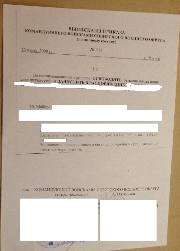 #3577Глубокоуважаемый Стасон! На данный момент не надо, делай как я, надо, делай лучше чем я... Причем здесь выписка на распоряжение? Там может быть написано, что угодно, это в меньшей степени касается Вас, чисто организационный момент. Другое дело приказ на увольнение, здесь много подводных камней... Судя по всему у Вас этот "пресловутый" жилищный вопрос тоже не прописан? Просто удивительно, что Вас еще не исключили! Давайте договоримся я Вам лично пришлю выписку на увольнение в отношении меня, а Вы потом сравните. Согласны? Это будет наш маленький секрет. Я готов Вам отправить на эл. адрес фото моего приказа. Но сейчас, исходя из того что Вы мне написали, неудивительно, что Вам прислали уведомление, так как Вы ничем не защищены. Я пишу из Владивостока, если сразу не отвечу, значит сплю.