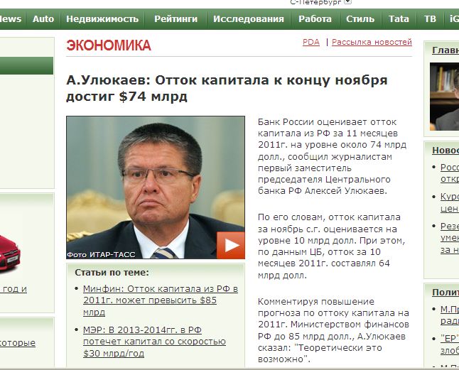 Для сравнения, если верить цифрам выше и ниже:В минувшем, 2010-м, от нас за границу утекло 38 300 000 000 долларов. Из них в четвёртом квартале — 22 миллиарда 700 миллионов (не четверть, а почти 60%).