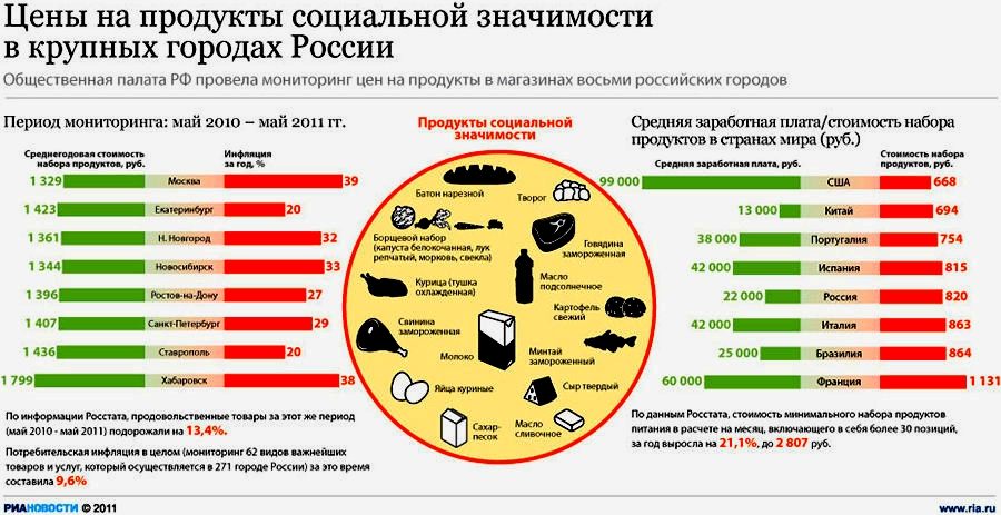 Quote200 ? "200px":""+(this.scrollHeight+5)+"px");">Рост цен на социально значимые продукты с октября до конца года, по некоторым прогнозам, мог составить 30-40%. Правительство считает, что ему удалось предотвратить такое развитие событий. Как передает NEWSru.com, заместитель министра экономического развития и торговли РФ Андрей Белоусов заявил 6 декабря, что когда правительство выезжало в регионы и советовалось с экспертами о разрабатываемых антиинфляционных мерах, то к ним поступили "письма поставщиков социально значимых продуктов владельцам торговых сетей, согласно которым, до конца года поставщики прогнозировали рост цен на продукты питания до 30-40%". Речь шла о таких товарах, как молоко, растительное и сливочное масло, и другие. "Однако, благодаря принятым антиинфляционным мерам нам удалось предотвратить такую инфляцию", - подчеркнул Белоусов. По его словам, в настоящее время рост цен можно назвать "ползущим". Он признал, что инфляция по итогам года, возможно, превысит 11,5%, "возможно, мы выйдем за ее пределы, но, надеюсь, не дотянем до 12%". Инфляция по итогам 2007 года вновь станет двузначной, превысив прошлогодний показатель на 2-2,5%. В этом году инфляция, по оценке Минэкономразвития, составит 11-11,5%. В сентябре МЭРТ заявляло, что инфляцию удастся удержать в рамках зафиксированного в законе о бюджете прогноза - 8%. Ноябрьское ускорение темпов инфляции объясняется скачком цен на продукты питания. Среди других причин - отставание производства продовольствия от роста платежеспособного спроса населения, низкий уровень конкуренции на локальных рынках, влияние роста мировых цен на зерно и продовольствие на цены внутреннего рынка (пшеница и ячмень, подсолнечное масло, молоко и молочная продукция). Достаточно сказать, что, например, в Италии в августе цены на продукты питания повысились на 30%. В числе причин роста цен на продукты МЭРТ называет также ослабление конкуренции импорта и сокращение предложения товаров на внутреннем рынке. Так, поставки сухого молока сократились в два раза, сливочного масла и сыров - в полтора. Инфляционные риски остаются высокими. В ноябре по темпам роста цен по-прежнему лидируют продовольственные товары. Значительно подорожали молочные продукты, маргарин, майонез, мучные кондитерские изделия. Высокими темпами стали расти цены на самые дешевые продукты (крупы, макаронные изделия). Причина в увеличении спроса: часть населения была вынуждена переключиться на самые дешевые продукты. только такое чувство, что отложило на после марта или мая (ВВП ведь до мая рулит) источник http://www.fontanka.ru/2007/12/06/120/