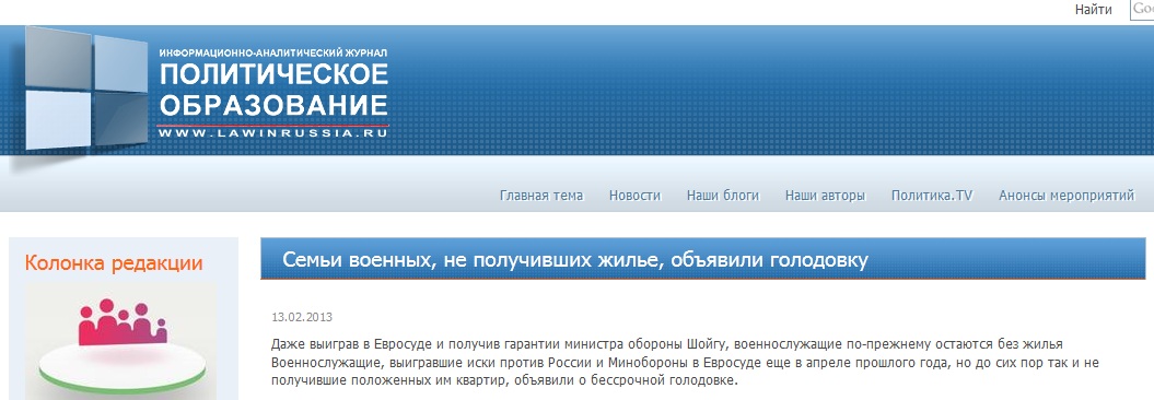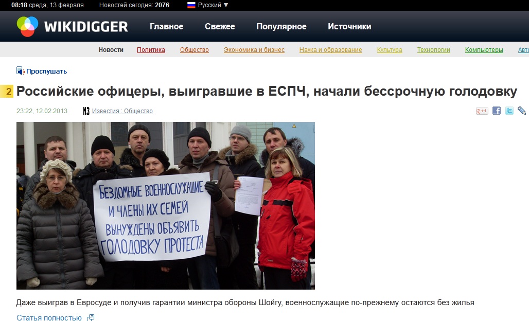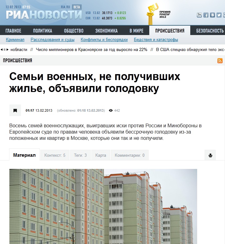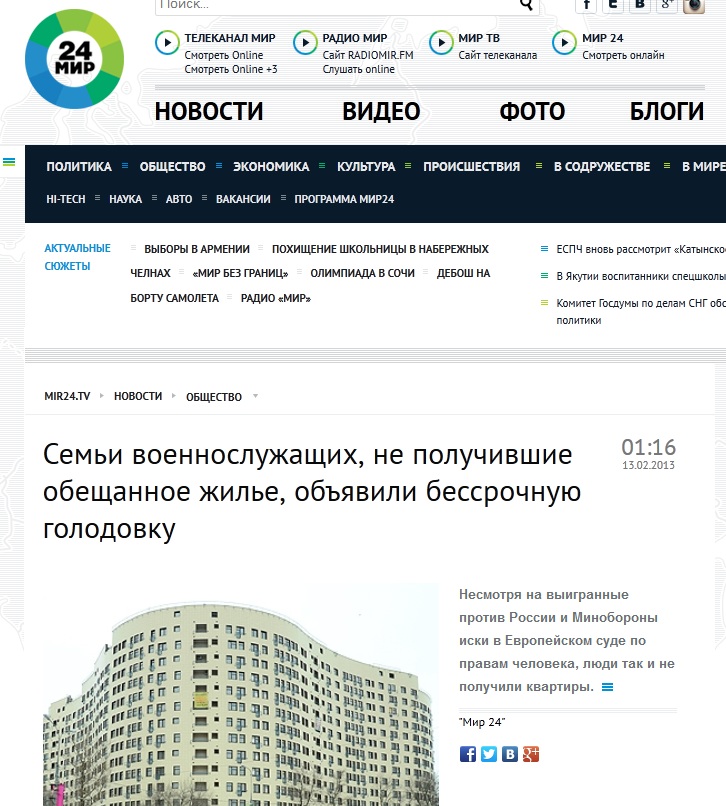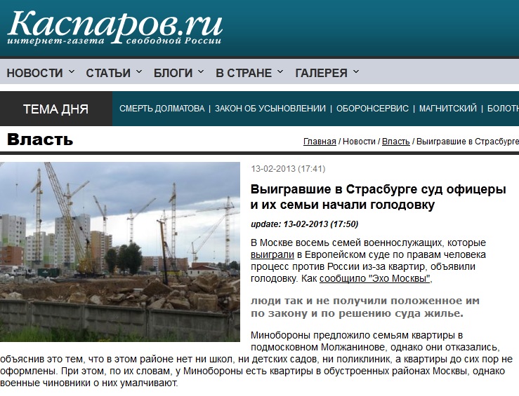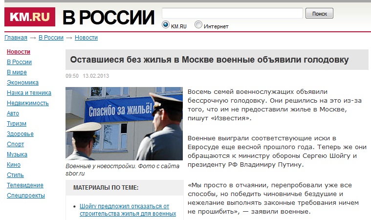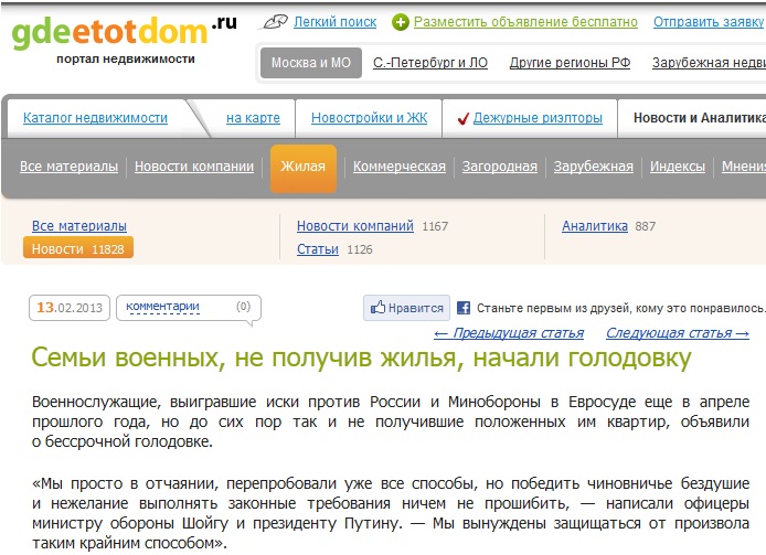Самое отвратительно это читать комментарии ко всем новостям о голодовке и вообще о ситуации с жильем от МО. Гражданские считают что зажрались. Не депутатов считают а нас. Во как надо уметь общество разъединить!!!!