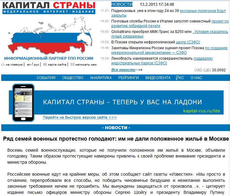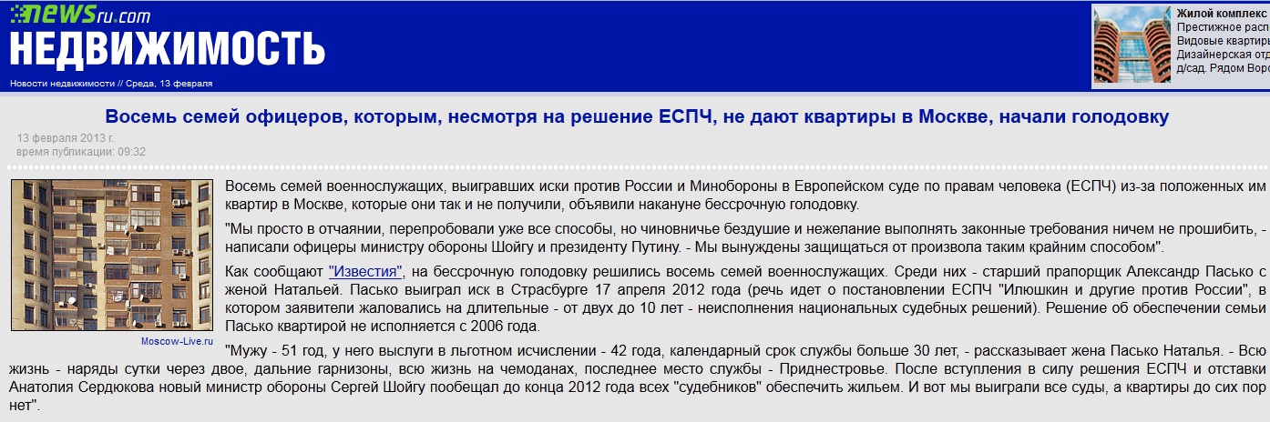 Показать текстГолодающие военные получат квартиры от Минобороны не позже марта