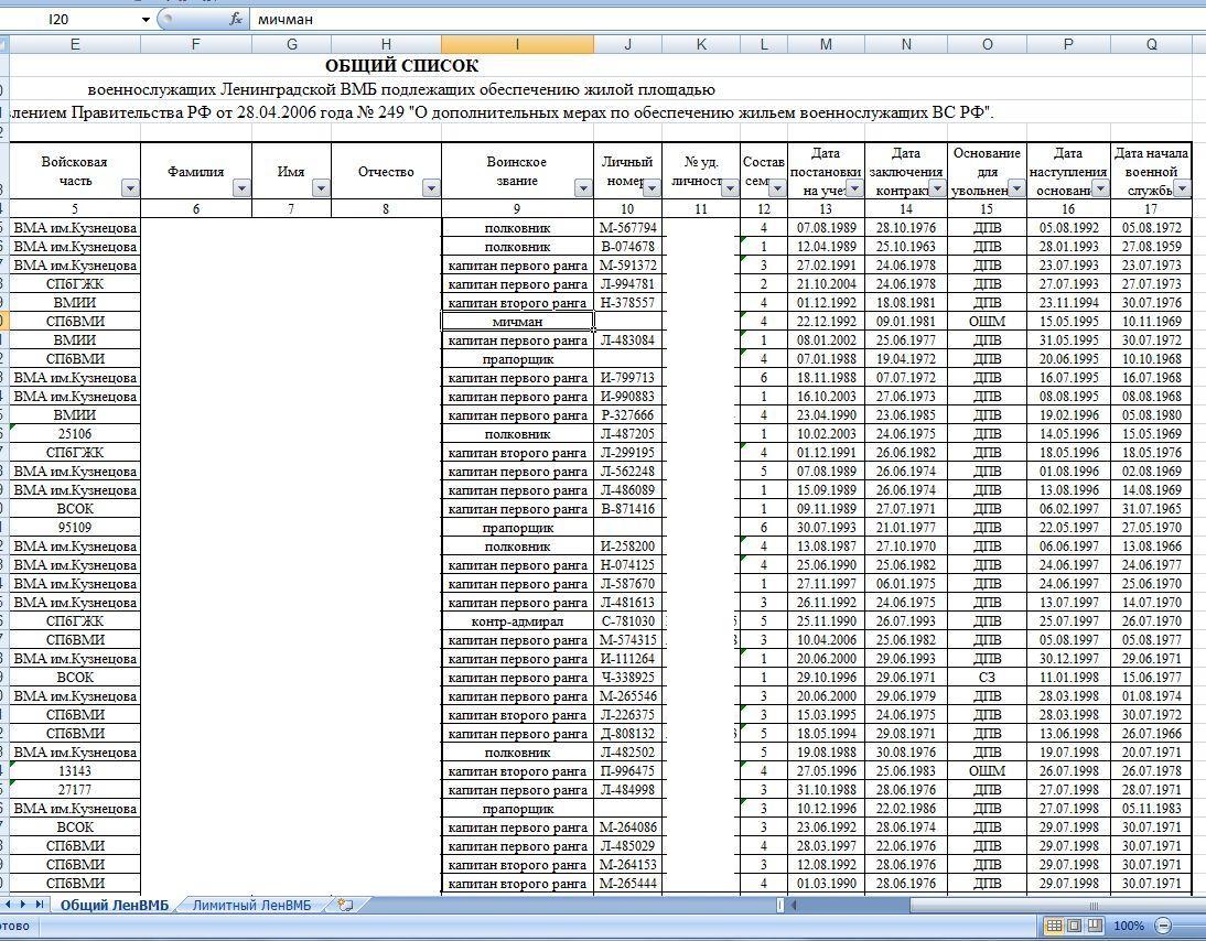 Вывод (по первой сотне военнослужащих из списка) - 30% офицеров жилья не получили.