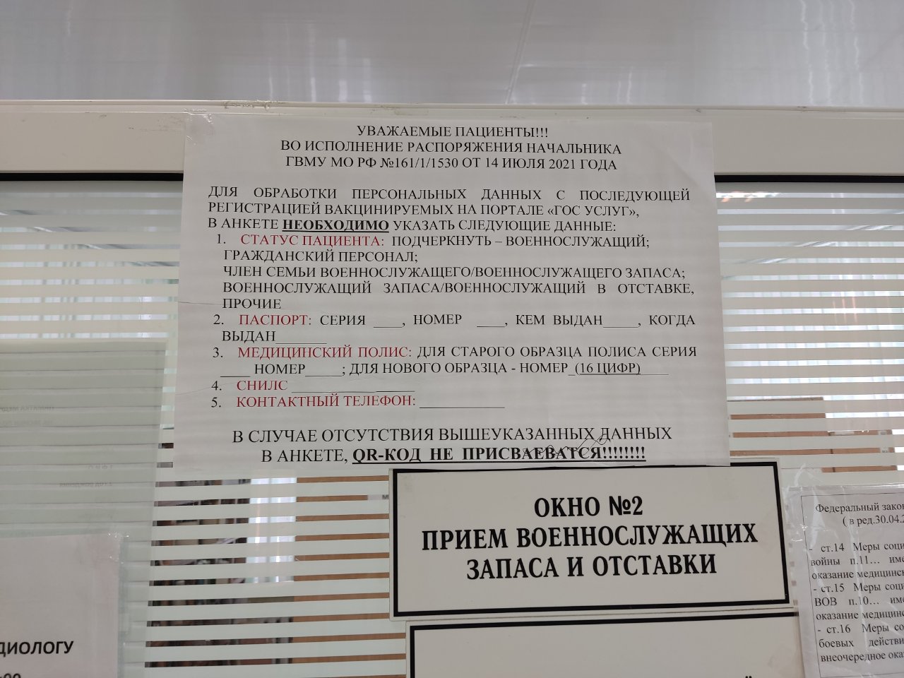 #1449А как быть "не москвичам"? Может кто-то сталкивался? Сделала прививку в госпитале, вместе с мужем, знала бы, никогда бы не пошла туда((((. Сертификата на госуслугах нет(((Москвичам можно получить qr-код на мос.ру, надо обратиться в поликлинику, где делали прививку. На госуслугах этот механизм не реализован, слишком много информации туда требуется загружать, которую нельзя давать в открытый доступ.В марте сделали прививку Спутник. Справку бумажную выдали. Но на Госуслуги -то данные не внесены были (тогда и не надо еще было иметь сертификат в обязательном порядке). Сейчас, когда объявлено, что везде будет требоваться сертификат, стало понятно, а сертификата - нет, есть только бумажная справка с печатями, все как положено подписано. Эта ситуация, как я понимаю, коснулась многих : военных, военных пенсионеров, членов семей - тех кто делал прививку в военных госпиталях. Решали данную проблему? Как?
