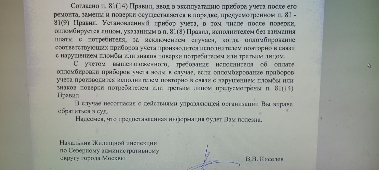 РЦ как бы намекает, что для перерасчёта я должен обратиться с актом проверки опломбирования в РСО...