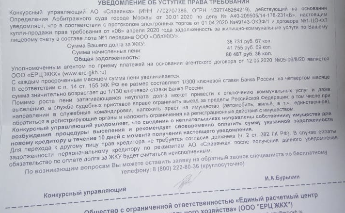 Недавно по прежнему месту жительства мне приходит письмо от конкурсного управляющего АО "Славянка", что у меня имеется задолженность по ЖКХ на август 2015 года, которая по договору купли-продажи прав требования от 06.04.2020, передана ООО "ОблЖКУ", агентом по приёму платежей является ООО "ЕРЦ ЖКХ". Требуют оплатить в досудебном порядке 40 тыс.(с пенями 80 тыс.) По моим данным у меня долгов не было, но чеков и квитанций за тот период времени не сохранилось. На мои доводы об истёкшем сроке исковой давности, они утверждают, что срок отсчитывается с этого года в связи с процедурой банкротства Ао "Славянка".