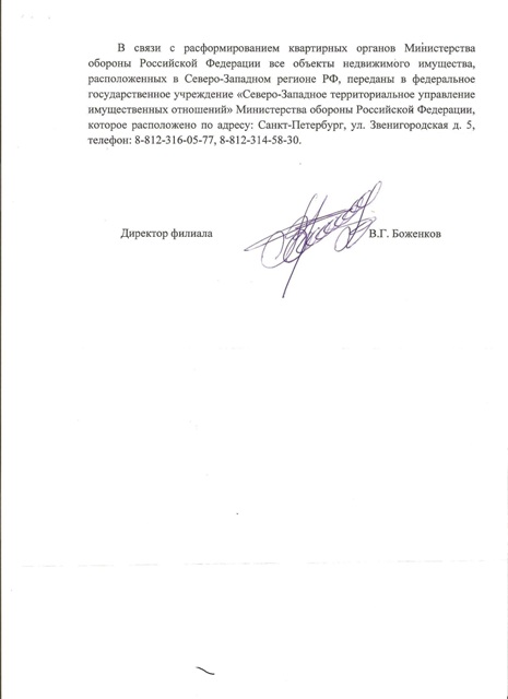 #30Добрый вечер. Очень нужна помощь. Мой отец проходил военную службу в Вооруженных силах, выслуга 20 лет, ветеран боевых действий в Афганистане. При увольнении встал на учет на получение жилой площади и в 1995 находился в списках лиц подлежащих отселению из военных городков №147, но до сих пор с 1982 наша семья живет в обособленном военном городке. Городок состоит всего из 2 двухэтажных ветхих домов 1960 г. постройки, являющихся объектами специализированного жилищного фонда МОРФ, расположен вне населенного пункта, рядом с городской свалкой. До автобусной остановки 2 км., социальная инфраструктура отсутствует. Квартира расположена на 1-ом этаже, горячей воды нет, ванны нет, газ в баллонах. Технические паспорта на дом, квартиры у наймодателя отсутствуют. Обслуживание дома осуществлялось Тайцевской КЭЧ, которая возложила обязанность на УК ООО«ГТМ-Стройсервис», а с 2012 на ОАО«Славянка». Управляющие компании в квитанциях на оплату жил. помещения и ком.услуг, указывают разные мифические адреса. А по сообщению некоторых должностных лиц адрес регистрации, который стоит у нас в паспортах вообще отсутствует. С 2007 нам говорят, что дом МО РФ передает в муниципальную собственность Ленинградской обл. Отмечу, что в Санкт-Петербурге наша семья зарегистрирована более 30 лет, а тут Ленинградская область!!! В связи со сложившейся ситуацией месяц как я не могу зарегистрировать по данному адресу новорожденного ребенка (отказ). По причине того, что городок является «фантомом». Подскажите, что можно сделать. Спасибо.