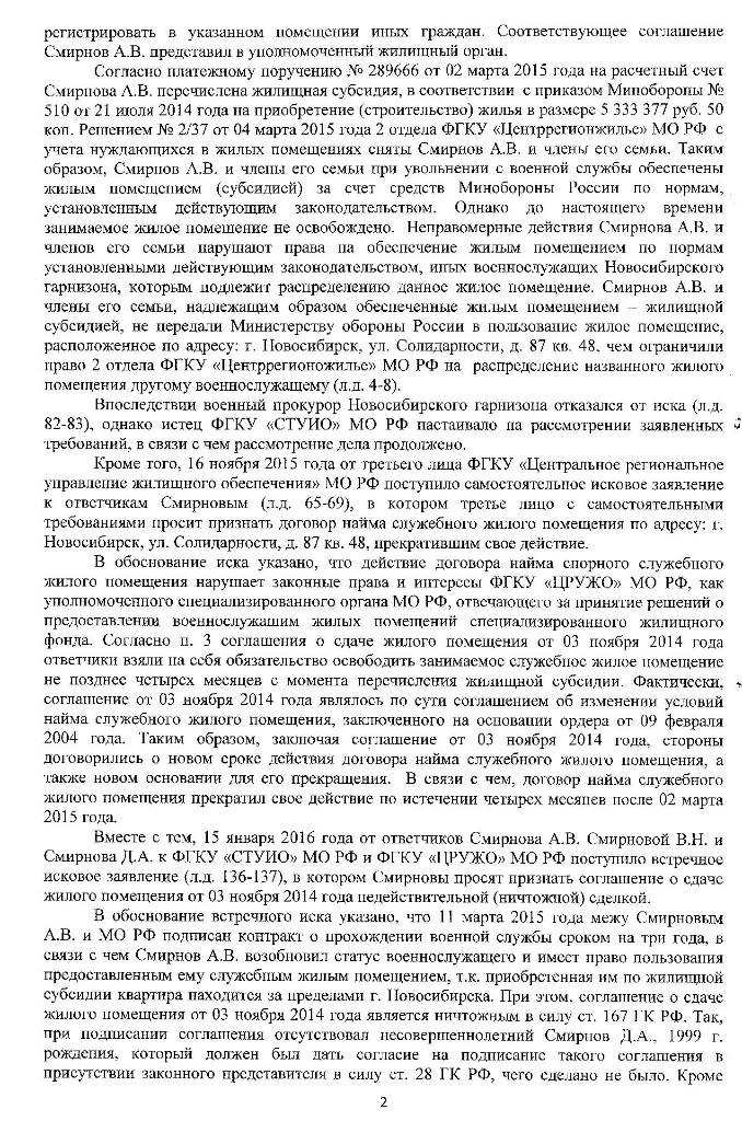 #462А как же пункт 19 этой статьи? "19. Военнослужащим - гражданам, проходящим военную службу по контракту, признанным нуждающимися в жилых помещениях, гражданам, уволенным с военной службы, состоящим на учете в качестве нуждающихся в жилых помещениях в федеральном органе исполнительной власти, в котором федеральным законом предусмотрена военная служба, отказавшимся от предложенного жилого помещения, расположенного по месту военной службы или по избранному месту жительства, которое соответствует требованиям, установленным законодательством Российской Федерации, а также изъявившим желание изменить ранее избранное место жительства, предоставляется жилищная субсидия."dura lex, sed lex. Полученную субсидию военнослужащий, заключивший 1-й контракт до 01.01.1998, ОБЯЗАН реализовать так, чтобы не нуждаться в жилом помещении ПО МЕСТУ ПРОХОЖДЕНИЯ службы. Абзац3, пункт 16, ст. 15, ФЗ ОСВ в редакции от 14.02.2015. Но всё же хотелось бы почитать определение суда. Назовите название ГВС и номер дела.QR_BBPOST Поясняю, получил субсидию, жильё купил не по месту службы, оказался неправ