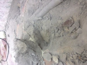 Сначала подумал, что увлекшись, слой плиты перфоратором снял