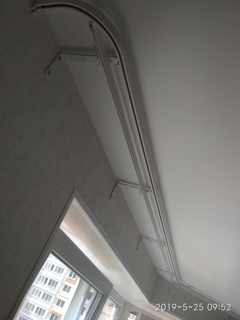#1179На форуме вроде не приветсвуется реклама, но думаю никто против не будет, потому что сложно с полуэркером найти подходящий карниз. Мне вышел в 9900 с установкой, ставили двое часа три. Профиль алюминий, гнули в тамбурном коридоре. Привозят цельный профиль, я заказывал 4 метра. На месте режут и гнут по своим замерам.