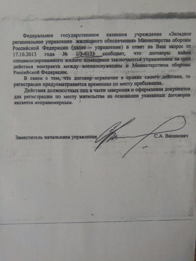 #1332Доброго времени суток!Подскажите, пожалуйста, пути решения такой ситуации: Уволен по ОШМ, ожидаю постоянное жильё. Проживаю в служебной квартире. Женился и возникла необходимость в регистрации жены со мной. Она зарегистрирована в другом регионе в квартире матери. Собрал необходимые документы и прибыл в отдел ДЖО. Принять документы отказались ссылаясь на то, что я уже не военнослужащий и договор найма специализированного жилого помещения истёк. Начальница отдела "ошарашила", что никто договор заключать не будет и вписывать туда члена семьи тем более. Скажите, мол, спасибо, что не выселяем. Живи и жди, а жена пусть месту регистрации живёт. Это, практически, дословно, не считая пренебрежительной интонации и т.д. В юр. отделе просто посмеялись в лицо. Документы не приняли и мотивированного отказа так и не дали сославшись на множество важных (кроме меня) дел. Паспортист без договора зарегистрировать не может. Есть ли у Вас мнения как мне поступить???