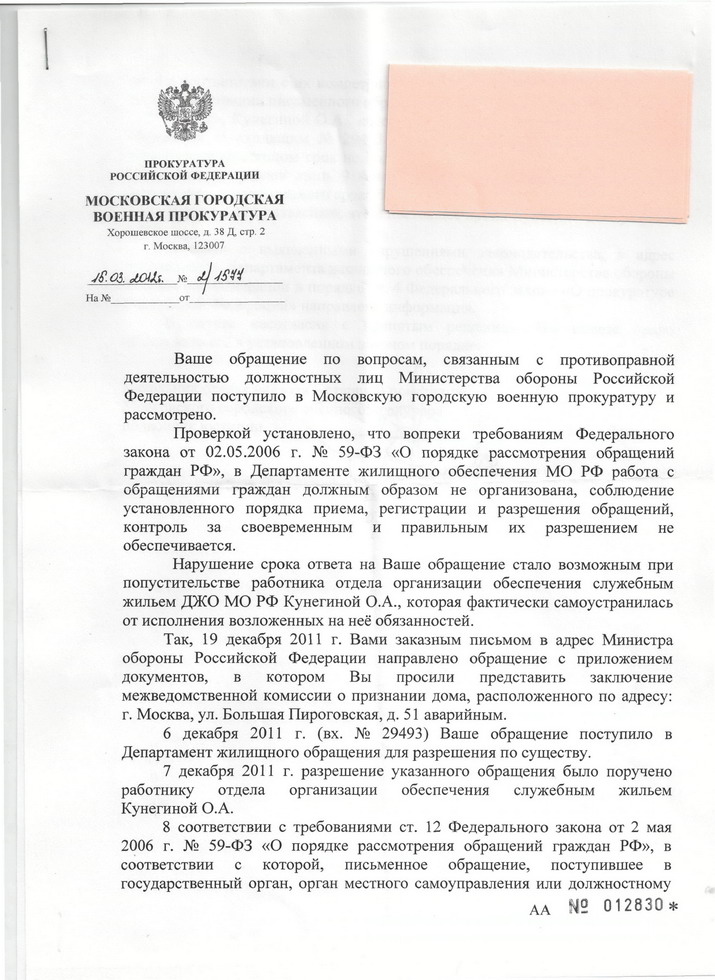 5. В какой орган военного управления направлено обращение и срок его рассмотрения Вы можете узнать в отделе по работе с обращениями граждан Управления делами Министерства обороны Российской Федерации.