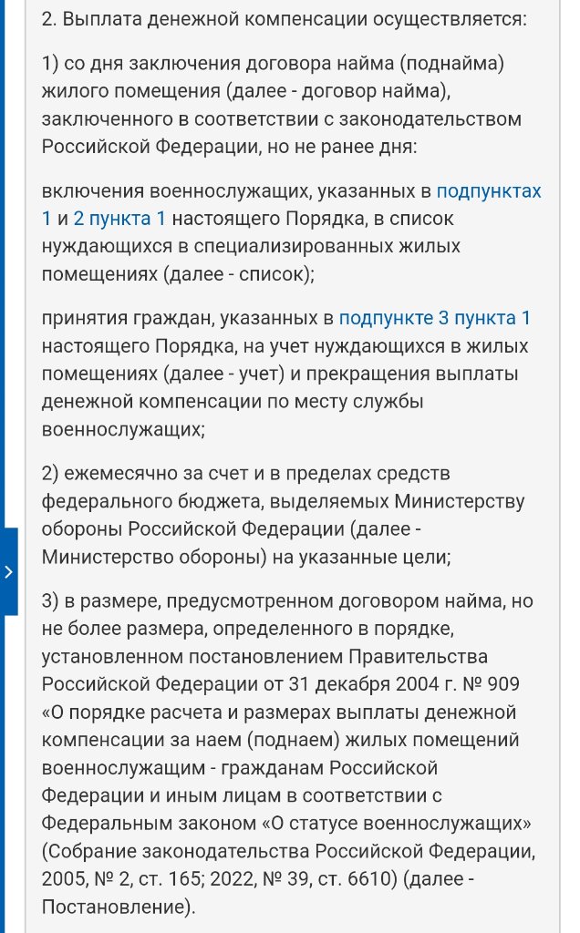 #2020Рекомендую внимательно изучить - Приказ Министра обороны РФ от 16 ноября 2022 г. № 686 “Об установлении Порядка выплаты в Вооруженных Силах Российской Федерации денежной компенсации за наем (поднаем) жилых помещений”Добрый день! А можно поподробнее про Росжилкомплекс? Я подал документы ещё в марте и до сих пор нет решения о компенсации. Написал жалобу через личный кабинет мил.ру, но воз и ныне там.Здравствуйте! Подал документы на продление ( назначение) компенсации за найм жилья в апреле, назначили только в августе, и то после того, как сам растормошил Росжилкомплекс, который якобы не предоставлял сведения военкомату.