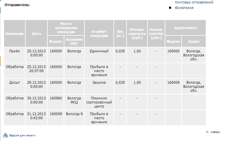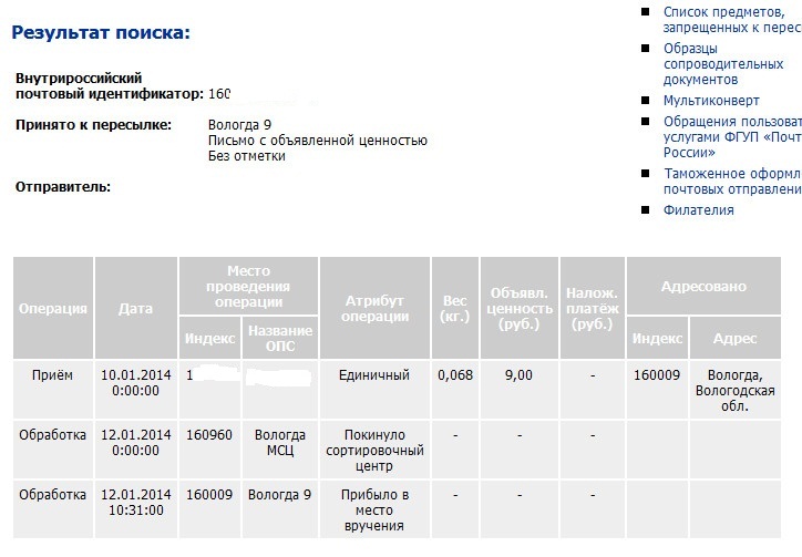 Взято с сайта Почты России.