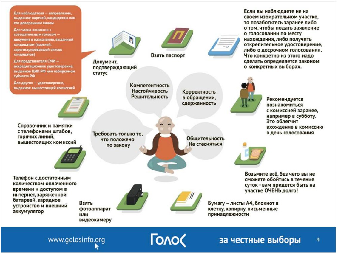 «Наблюдение на выборах в день голосования» для наблюдателей и членов участковых избирательных комиссий с правом совещательного голоса.