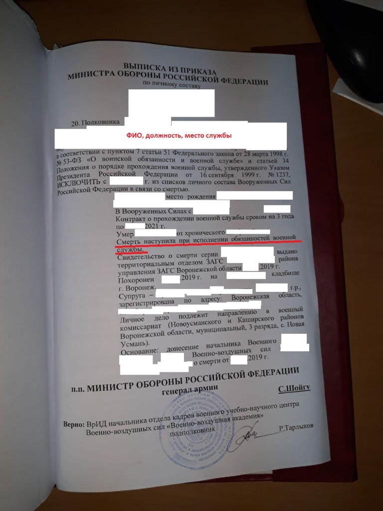 Хотя в приказе министра обороны написано: " Смерть наступила при исполнении обязанностей военной службы"!