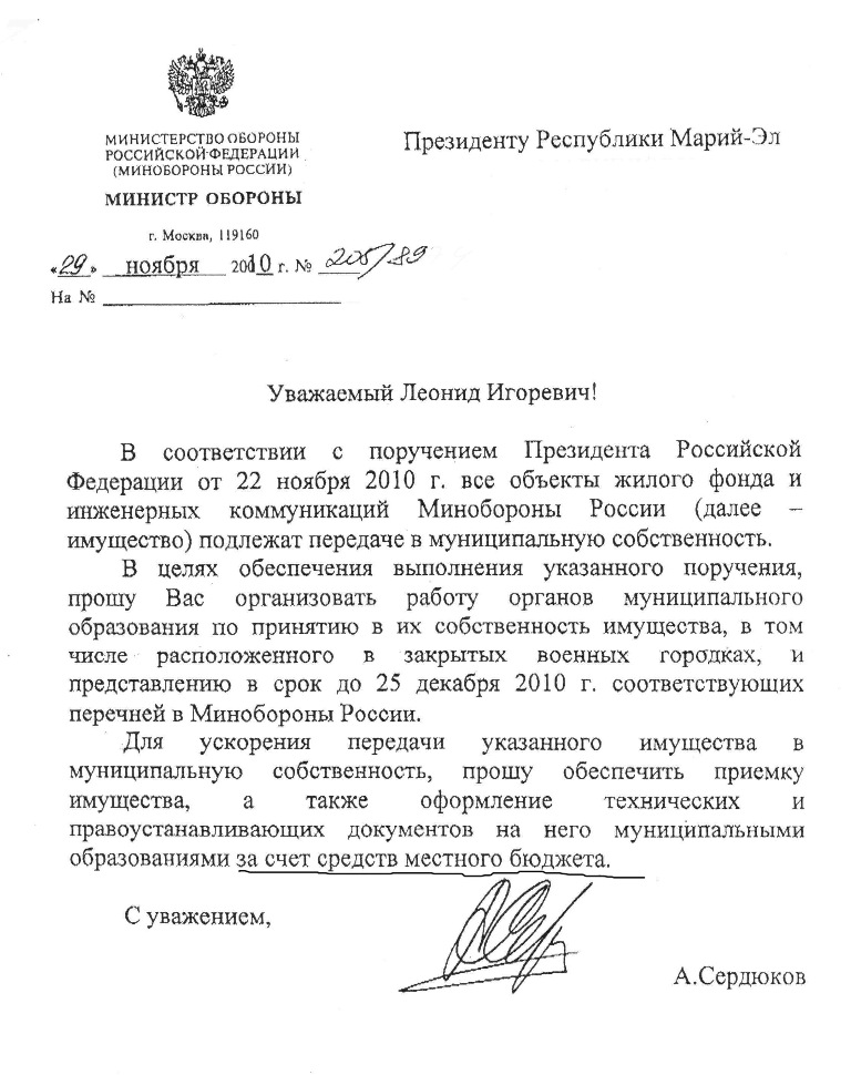 Спасибо, но я о другом, о передаче муниципалитетам военных городковПоэтому всё передаётся в комплексе.