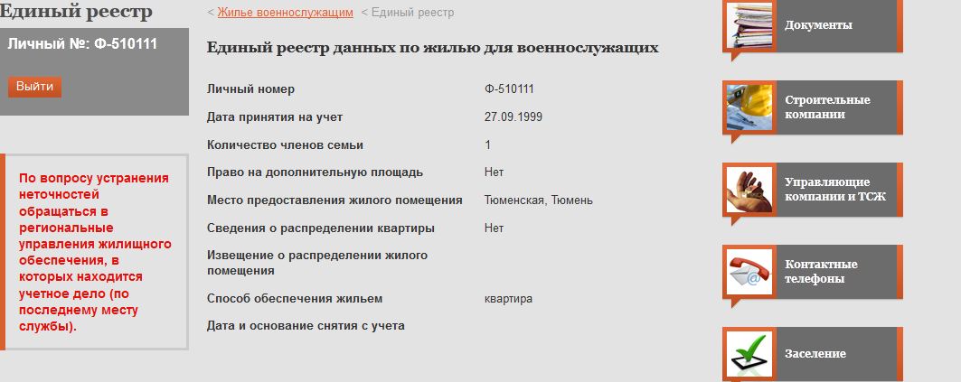 Уважаемый ogmo! Помогите разобраться с состоянием рассмотрения подорднрного дела и заключением ДСН. В реестре состою. Извещение от 28.10.2010 года №0002249. Личный номер П-831954. Документы с августа 2011 года находятся в 1 отделе ЗРУЖО "Теплый станн" (Сданы в В ДЖО в декабре 2010 года, переправлены из ДЖО (Знаменка) в "Темлый стан" в августе 2011 года, лично сданы из архива для прверки в каб. №11 в сентябре 2010 г. (учетный №21 от 15.09.2011 г.). Уволен в запас по достижении предельного возраста в апреле 2011 г (гарнизон Мирный Архангельской области, Космические войска, войсковая часть 13991), оставлен в списках очередников. До настоящего времени никакой информации по результатам проверки документов для приняития Решения о заключении ДСН не имею. До Теплого стана более 1000 км. Официальные запросы начальником отделения "Теплый стан" игнорируются: (Горячая линия МО РФ (вх. 18012 от 22.03.2012 г., вх. №31017 от 27.04.12 г., 17.05.2012 г.), заявление начальнику 1 отделения ЗРУЖО "Теплый стан" исх. 007724061610 Почты России от 28.04.2012 г.). При посещении Теплого стана ответ "ждите официальной информации на официальном сайте" - издевательство, когда рассматриваются дела и заключаются договоры 2011 года, 1, 2 -го кварталов 2012 годов. Сколько можно ждать!!!. С уважением sevon37.