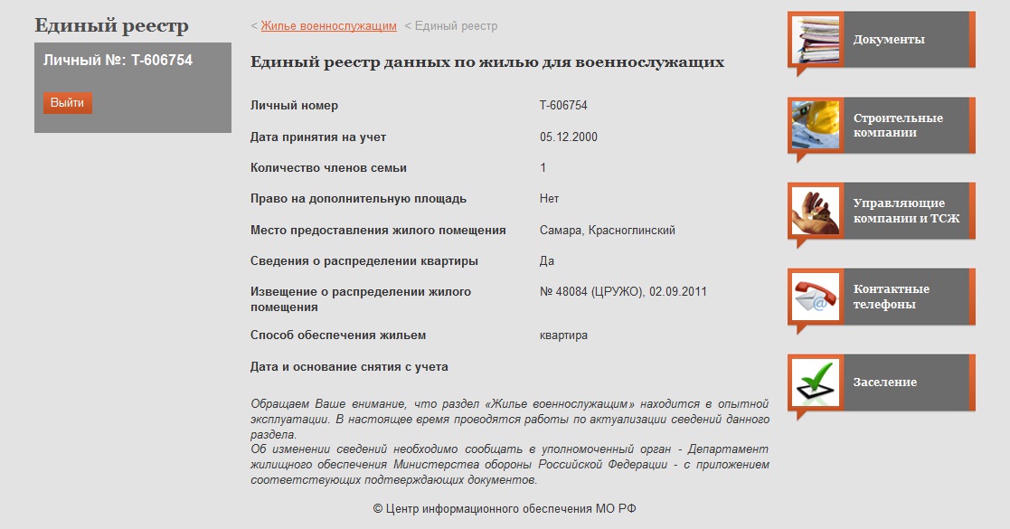 Утром заработал сайт МО, где я обнаружил ДА в сведениях о распределении и номер извещения № 48084 (ЦРУЖО), 02.09.2011 . Должна быть однокомнатная квартира...