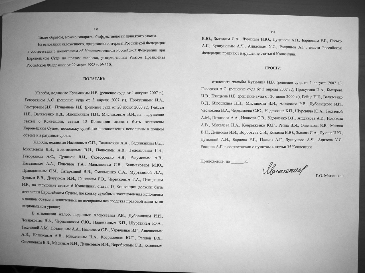 Спасибо, ценно. Матюшкин своими "отмазками" в меморандуме алгоритм дал, что нужно пройти, чтобы по-максимуму к евросуду подготовиться.Выкладываю обещаное...
