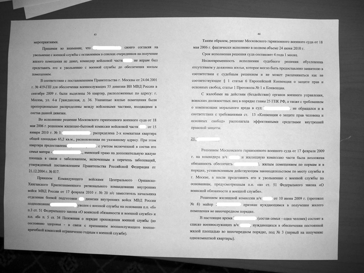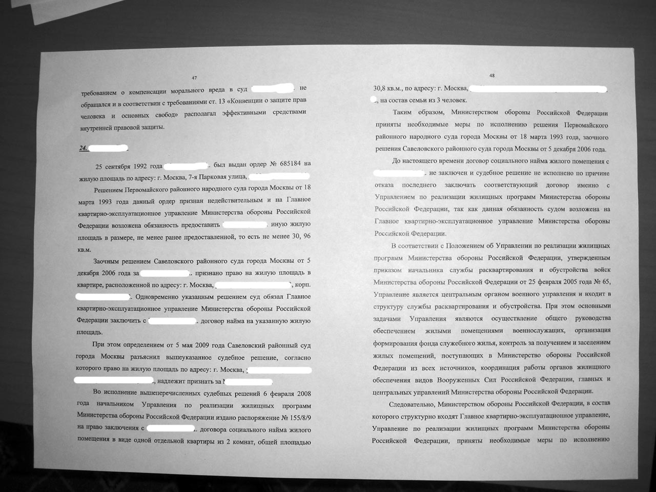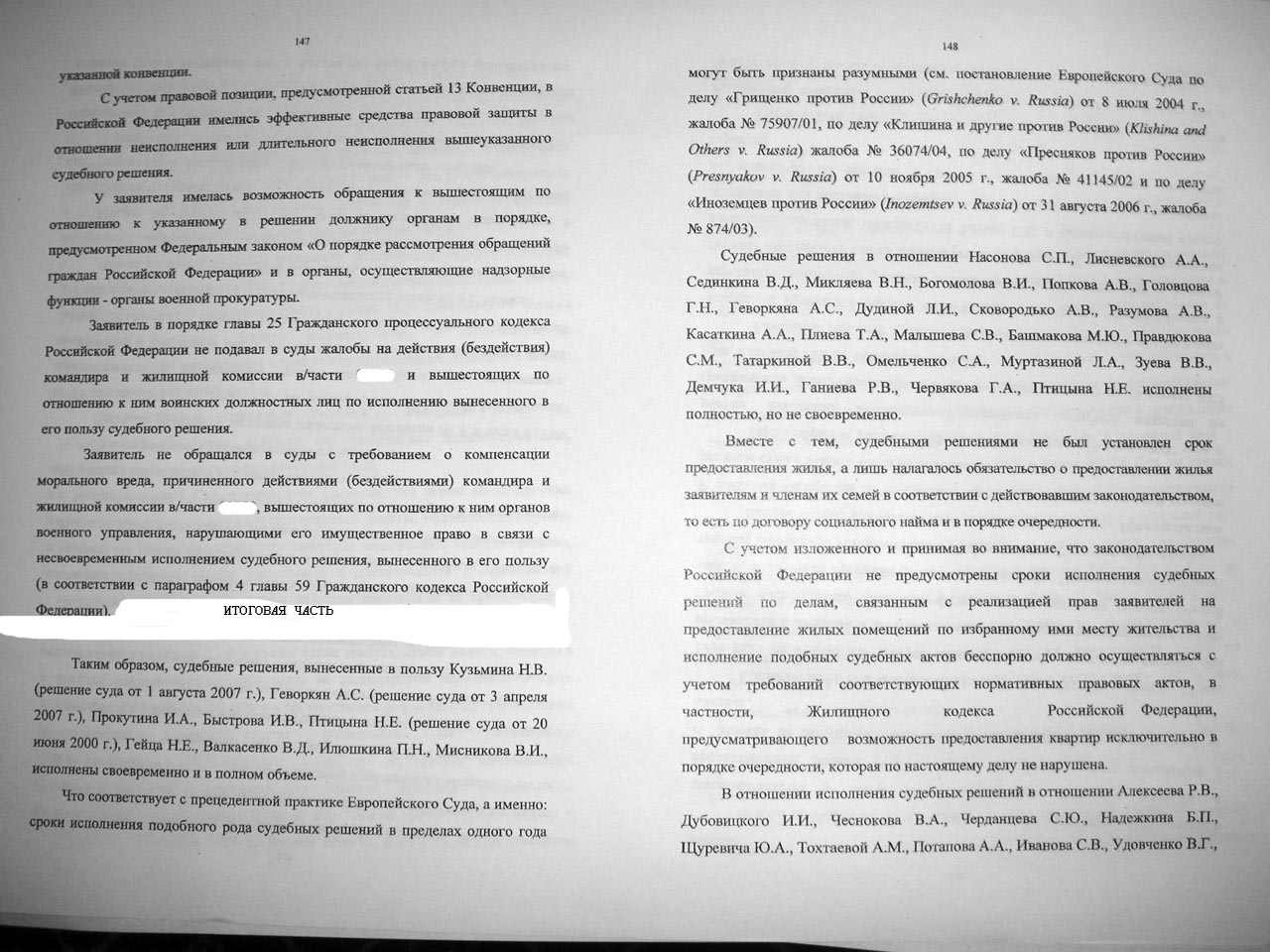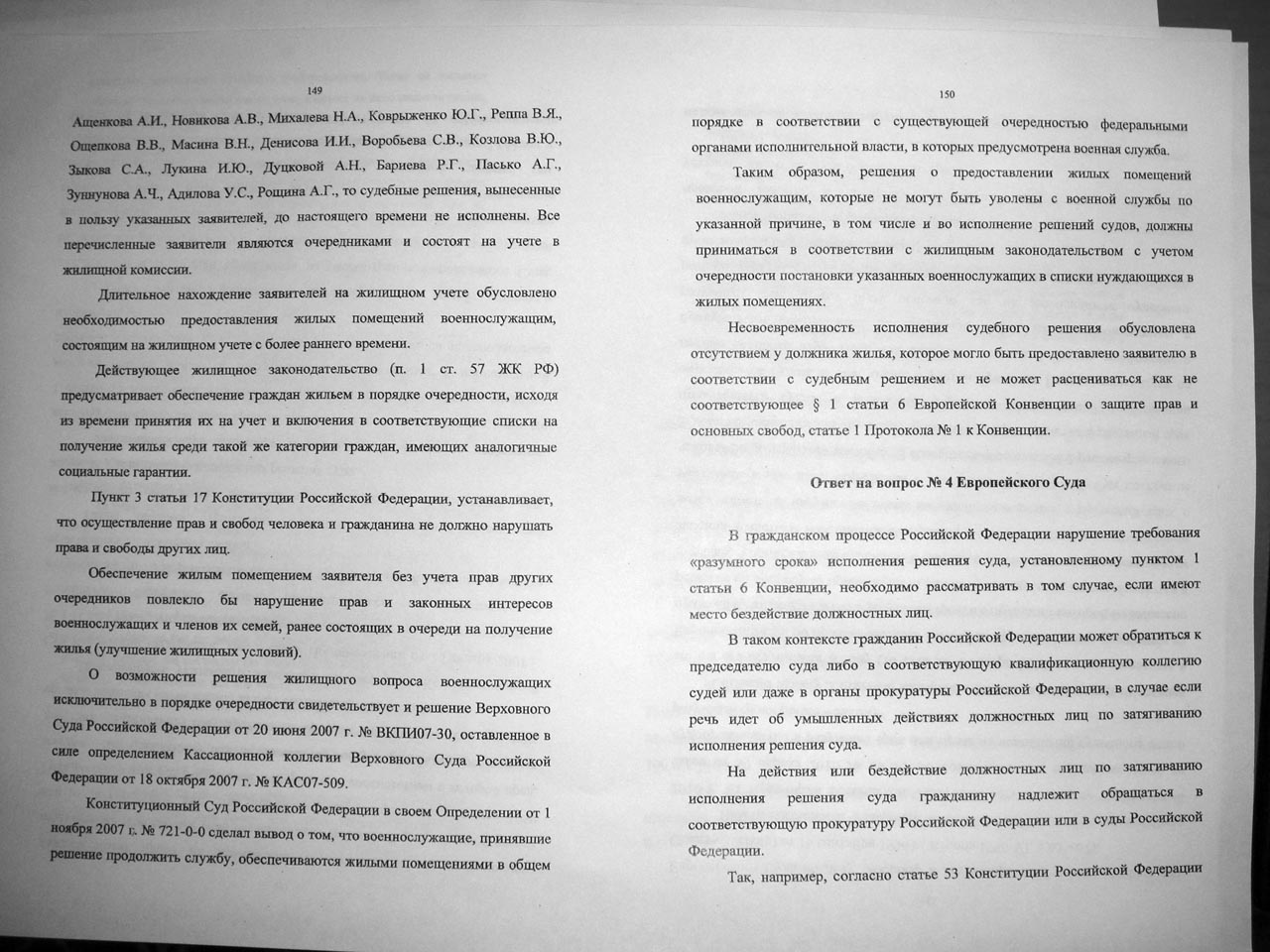 #247Отлично!! Просека для многих обманутых РФ военнослужащих, имеющих годами не исполняемые решения суда по жилью, проложена! Теперь идти этим путём будет проще и быстрее.Европейский Суд рассмотрел жалобы на задержки в предоставлении жилья военнослужащим