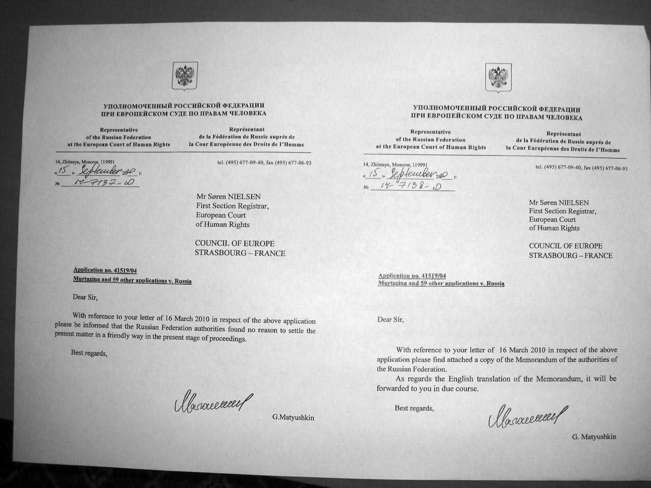 #230Получил меморандум из ЕСПЧ, предложено до 30 ноября представить свои возражения (напомню это по жалобе 41519/04 "Муртазины и 59 жалоб против Росиии")... Меморандум на 158 листах, завтра постараюсь в части меня касающейся выложить на обозрение.