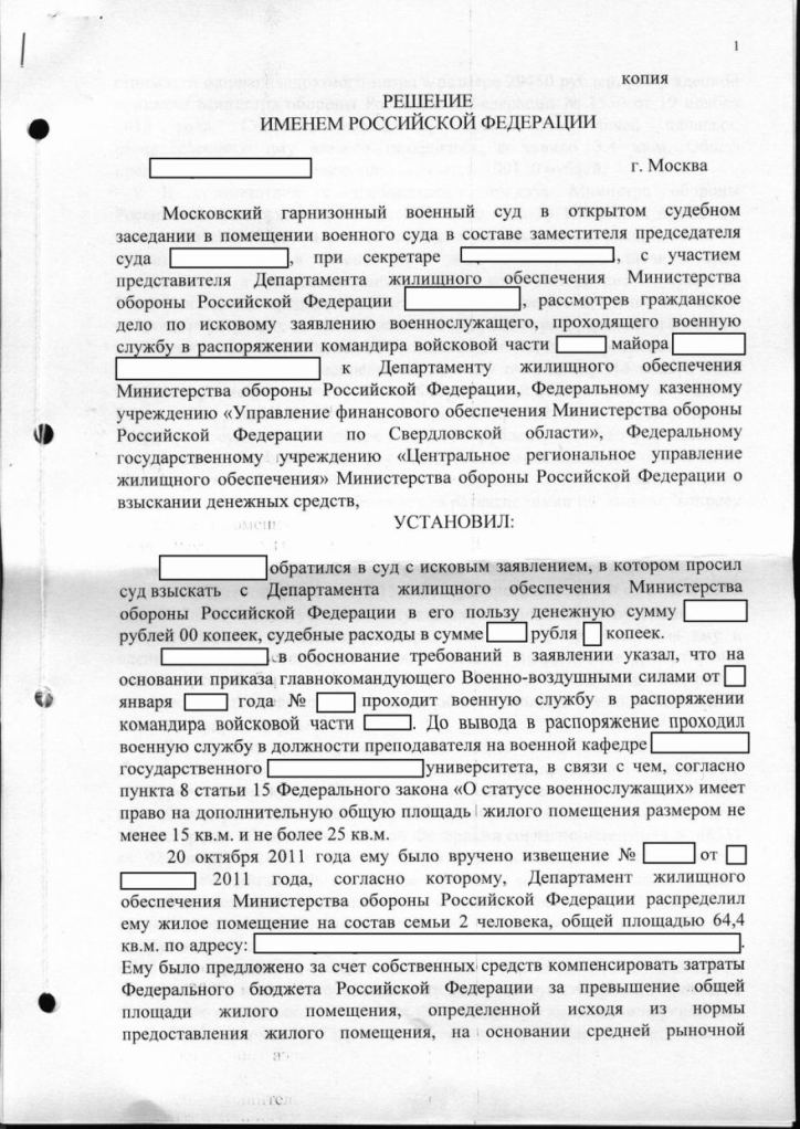 Решение Московского ГВС по моему иску к ДЖО МО РФ