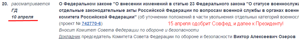 Я в курсе. 15 апреля одобрит Совфед....Кто в курсе завтра в какое время (моск.) будет СФ?