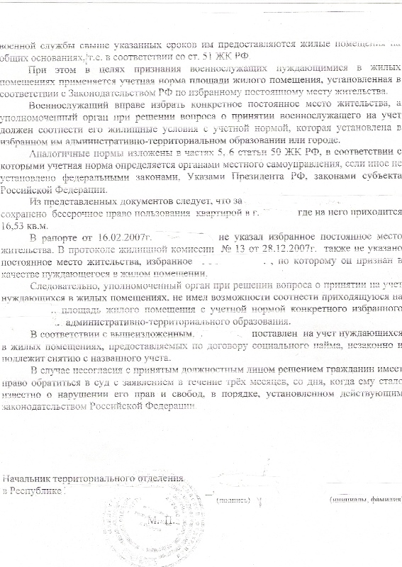 Рапорт на постановку в очередь: от 16.02.2007г.прошу о постановке в очередь на получение жилой площади на основании ст.51пп.1части1 ЖК РФ....
