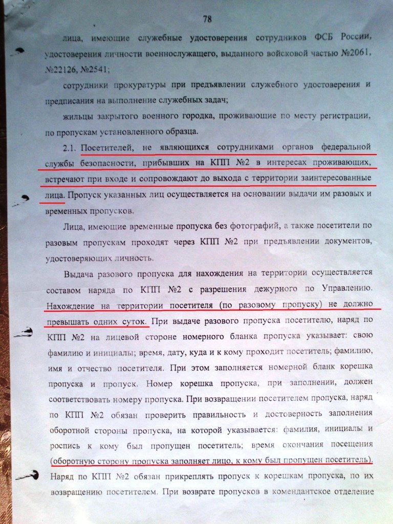 Всё равно, это не означает, что нет ограничений связанных с особым статусом данного военного городка.Представляет из себя лист заламинированой бумаги, ни кем подписанный, ни кем не утвержденный, без ссылки на какой-либо документ, на него ссылающийся.