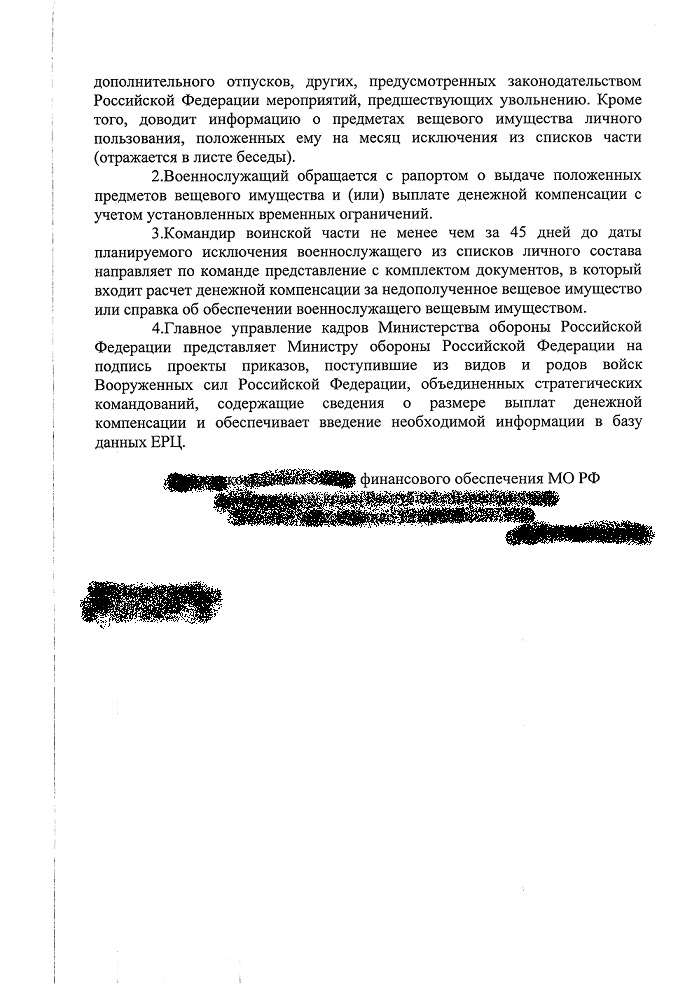Указания от 01.10.12г. директора Департамента финансового планирования Министерства обороны Российской Федерации по выплате денежной компенсащии за не полученное вещевое имущество.