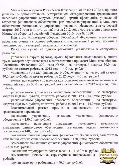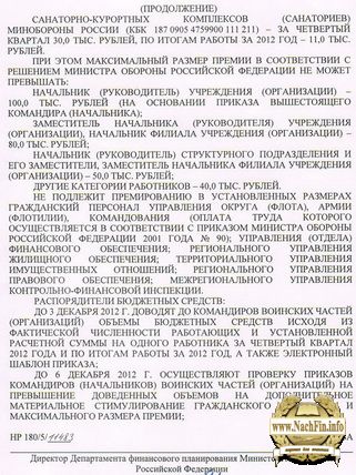 Указания директора Департамента финансового планирования Министерства обороны Российской Федерации по 1010 военнослужащим в 2012 г.