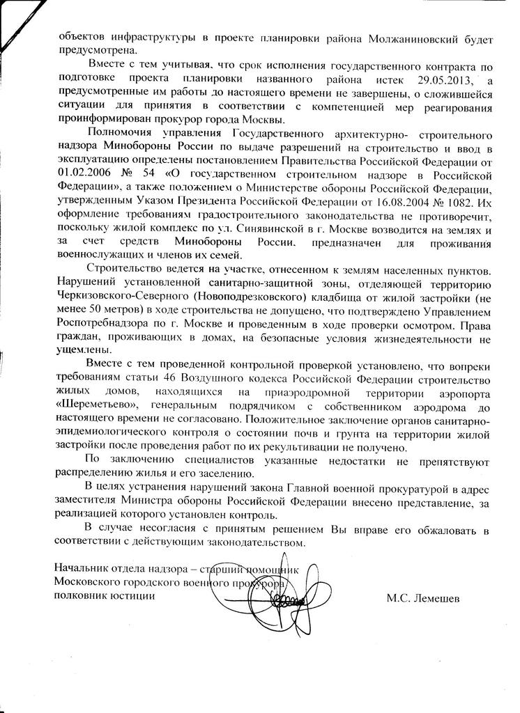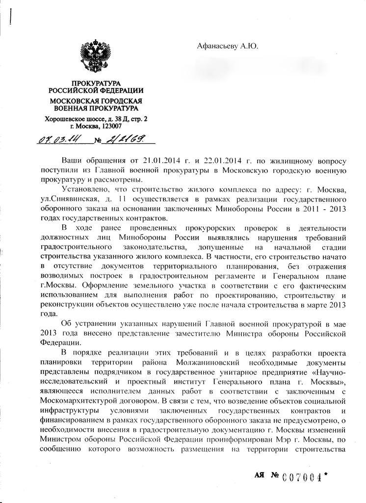 27.03.2014 г. - на каждом объекте построенного жилья в г. Москва (ул. Синявинская, ул. Большая Очаковская, ул. Левобережная, ул. Хорошевское шоссе) будет свой специализированный жилой фонд, в целях поддержания мобилизационной готовности личного состава ВС РФ проживающего в г. Москва.