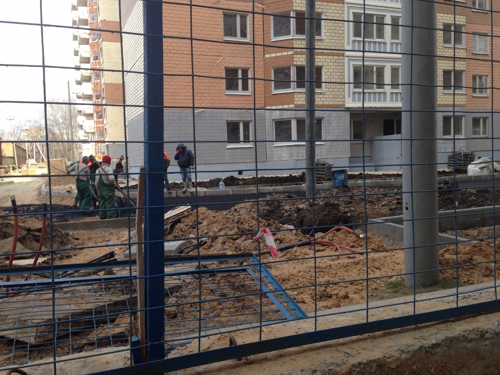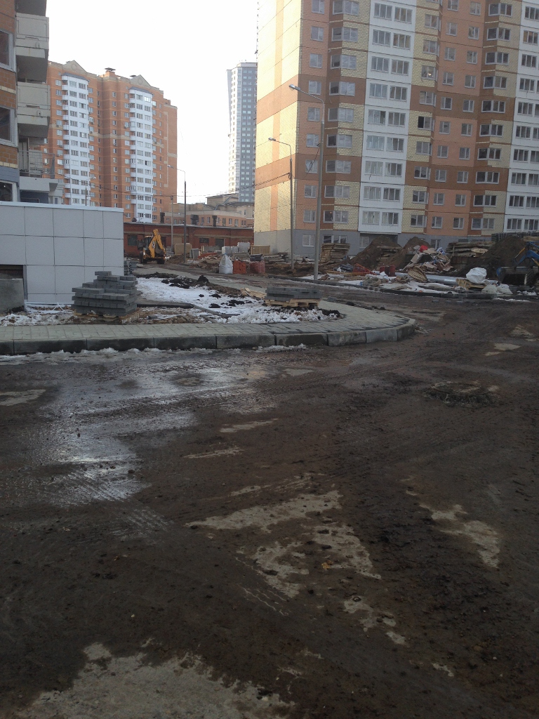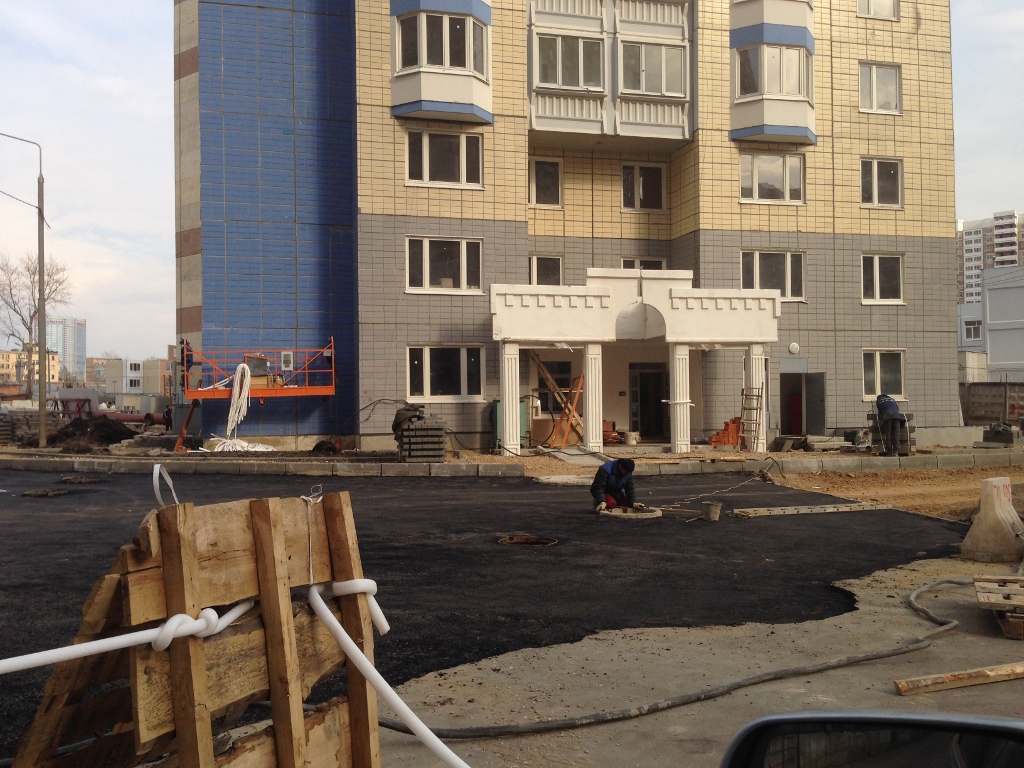 Бетонировали дорогу у 6 башни, и работы по территории у 1 и 3 домов.