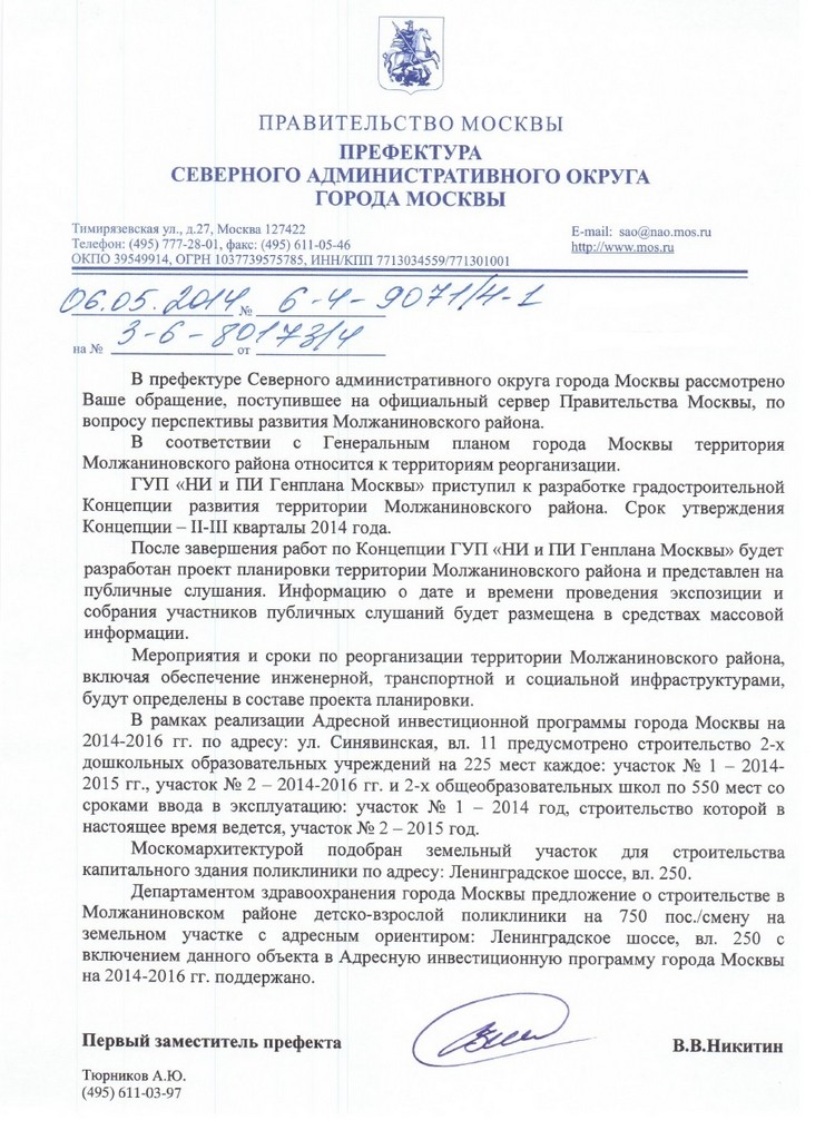 Пришел ещё один ответ (писал на имя Мэра Собянина, но обращение переадресовали Префекту САО )В нем важное уточнение по мед.учреждению